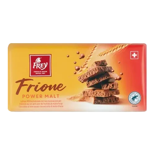 Conheça Frey Frione Power MaltA Chocolat Frey é uma barra de chocolate suíça que parece mais leve do que uma nuvem, mas que transborda com um caráter profundo e maltado. O Chocolat Frey areja sua base de chocolate ao leite para criar pequenas bolhas que derretem no instante em que tocam sua língua, liberando uma onda de doçura cremosa com o inconfundível toque de malte. power malt. O resultado? Uma textura divertida e um perfil de sabor que é ao mesmo tempo nostálgico e ousadamente moderno.