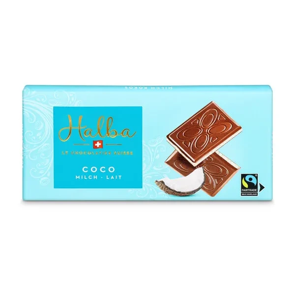 Meet your new favorite Swiss treat: Halba Coconut Chocolate – 100g. Silky milk chocolate pairs with an aromatic coconut filling for a balanced, tropical taste and a satisfyingly smooth melt. Crafted in Switzerland with Fairtrade cocoa and sugar (mass balance), it’s a responsible choice that delivers pure chocolate joy.